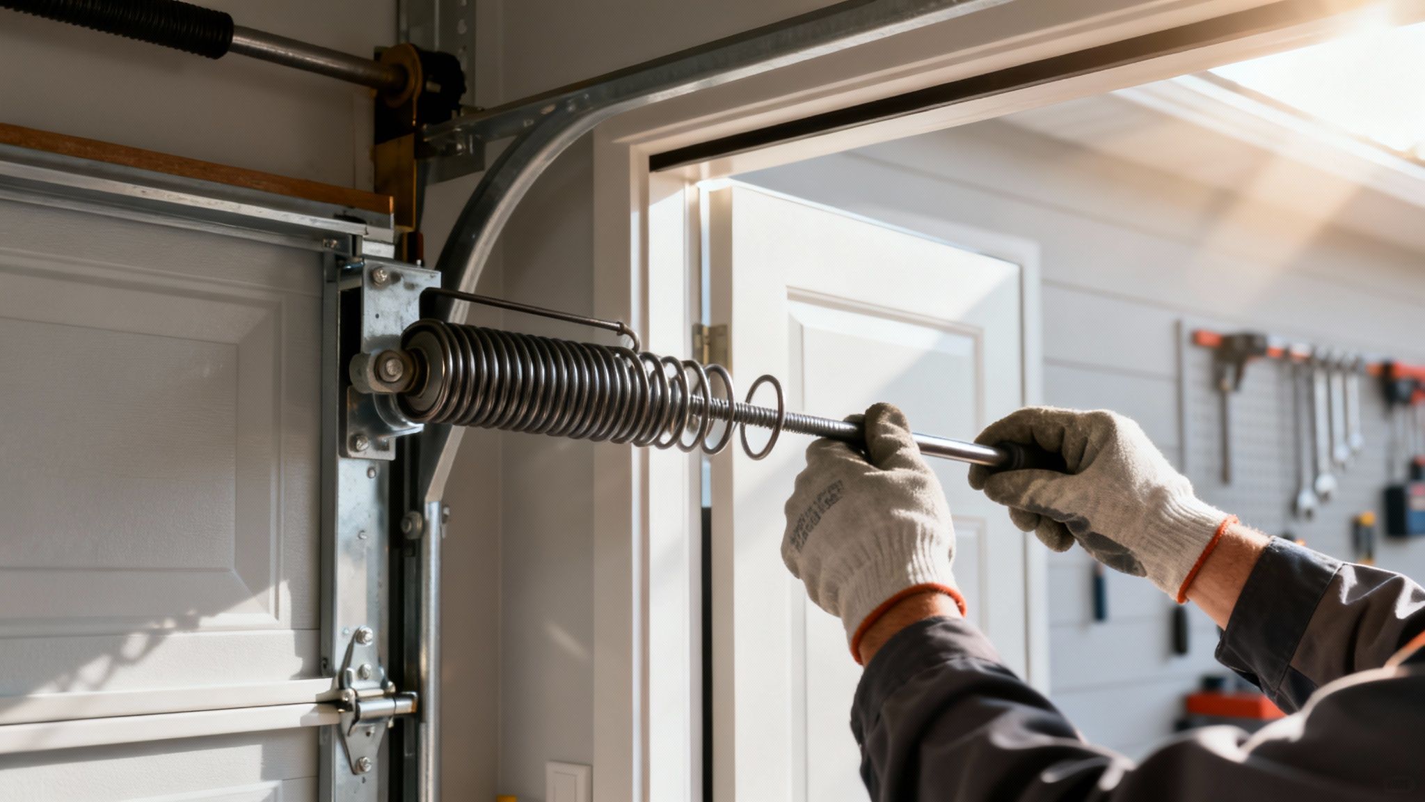 - Use specialized tools: Pros have the proper winding bars and safety gear that aren't sitting in your average home toolkit.
