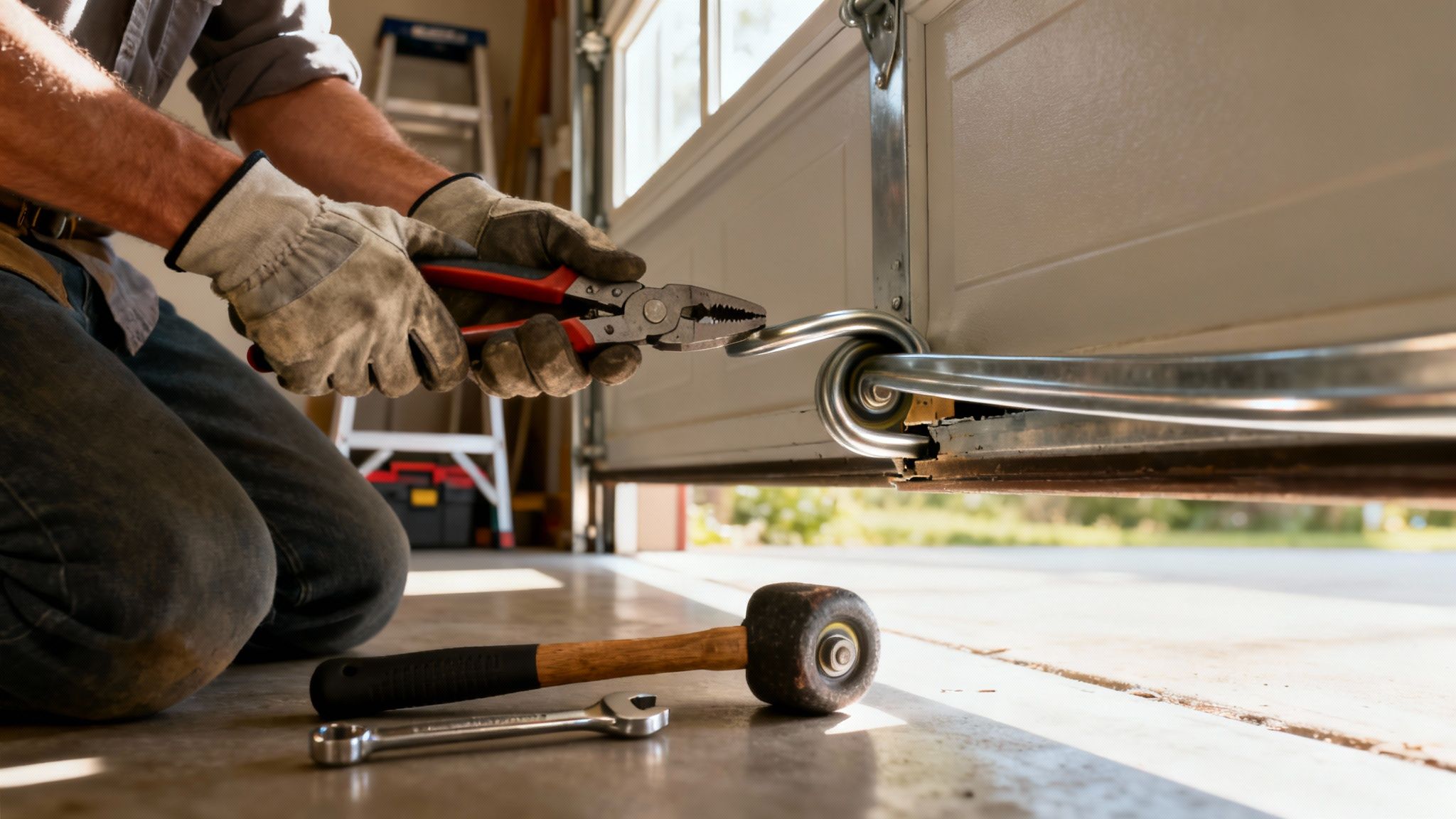 The Golden Rule of Garage Door Repair: Never, under any circumstances, attempt to adjust, loosen, or remove the torsion or extension springs. These parts are under extreme tension and can cause catastrophic failure if mishandled. This is a job strictly for trained professionals.